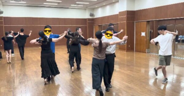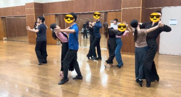 今回の例会では、ホールド前からの立ち位置やポジション変化、フットワークを意識して踊ることの大事さを学べました。